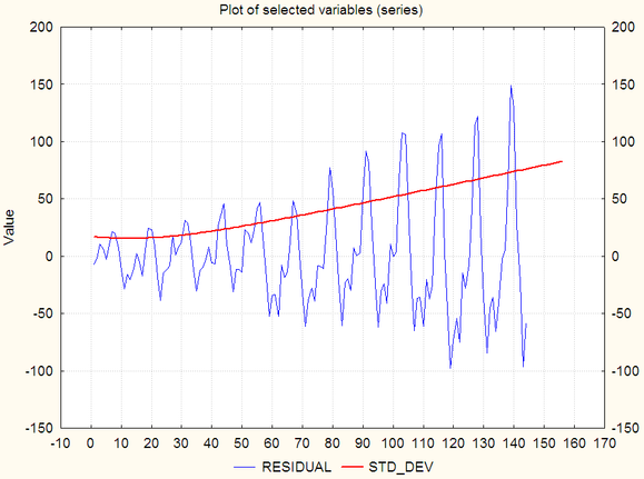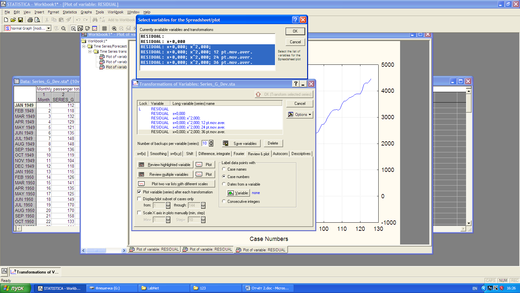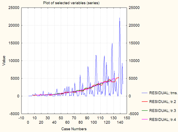 Теперь у нас в быстром доступе 5 записей из которых у нас первая основная, квадрат остатка и 3 претендента на роль непараметрической оценки дисперсии с периодами 12, 24 и 36. Нанесём их на один график со вкладки Review & plot.
