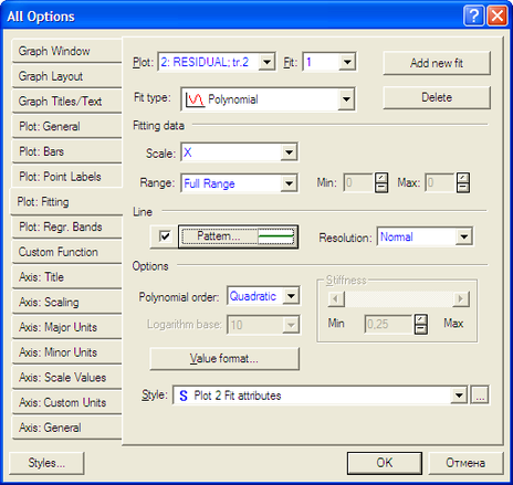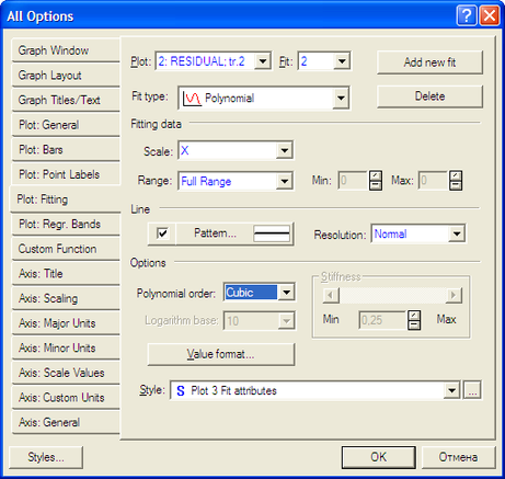 Теперь добавляем претендента (Fit tape – Polynomial, Polynomial order – Cubic):