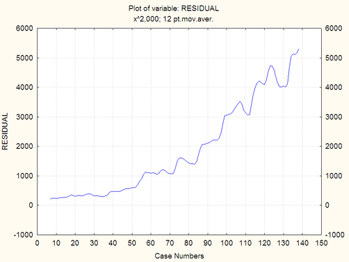 В результате на графике квадрата остатка получим наших претендентов SMA с периодами (12,6), (24,12) и (36,18).