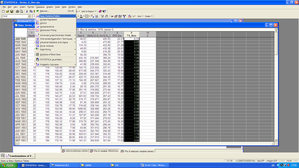 Проверяем статистики центрированного и нормированного временного ряда. Для этого выделяем 9 столбик и идём в базовые статистики:
