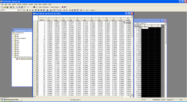 Рис. 43. Результирующая таблица значений коэффициента корреляции для 12 лагов
