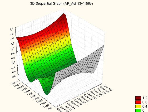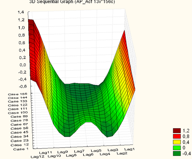 Рис. 45. Трехмерный график матрицы коэффициентов корреляции для 12 лагов