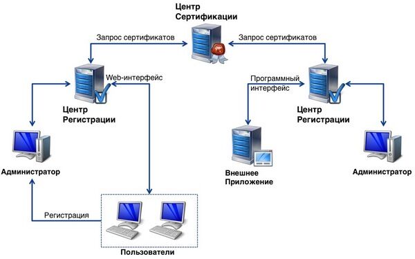 Центр Регистрации – серверный компонент, который осуществляет ведение баз данных учетных записей пользователей, изготовленных сертификатов ключей подписей, запросов на сертификаты и т.д. Центр Регистрации предоставляет интерфейс доступа к методам и объектам Удостоверяющего Центра. Центр Регистрации принимает разного рода запросы с Автоматизированных рабочих мест администраторов Центра Регистрации (посредством реализации Интерфейса Внешних Приложений) и от пользователей Удостоверяющего Центра (посредством реализации веб-интерфейса Центра Регистрации), обеспечивает их обработку и хранение, в случае соответствия запросов установленным политикам обработки - пересылает их на Центр Сертификации. Центров Регистрации для одного Центра Сертификации может быть несколько.