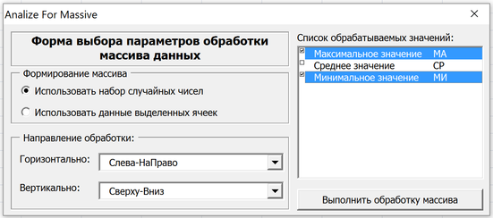 Разработать в «Microsoft Excel» пользовательскую форму выбора параметров обработки двумерного массива данных.
