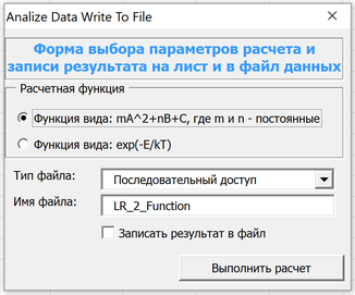 Разработать в «Microsoft Excel» пользовательскую форму выбора параметров для расчета пользовательских функций и записи результатов расчета на лист с возможным выводом результатов в файл данных.