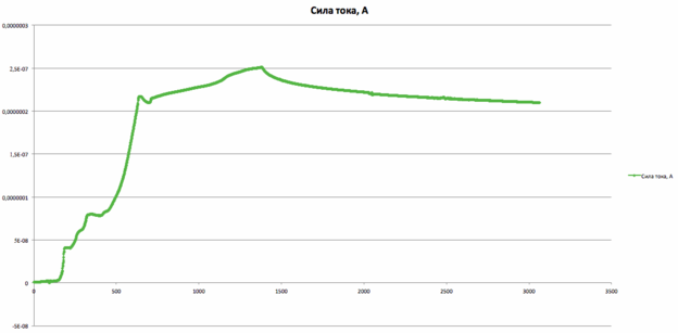 | № | Точки | Время, с / время, б/р | Сила тока, А | Размер ОНС, нм | Минимальное расстояние между ОНС, нм |