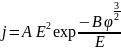 где А,В – коэффициенты; j – плотность тока автоэлектронной эмиссии; φ – потенциал работы выхода; Е – напряженность поля на острие