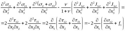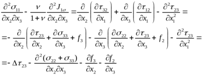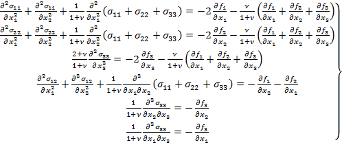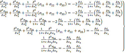 Окончательно преобразованные условия сплошности, выраженные в напряжениях (называемые также зависимостями Бельтрами — Митчела), имеют вид: