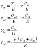 Зависимости между напряжениями и деформациями (Закон Гука): прямые (1.1.2) и обратные (1.1.3).