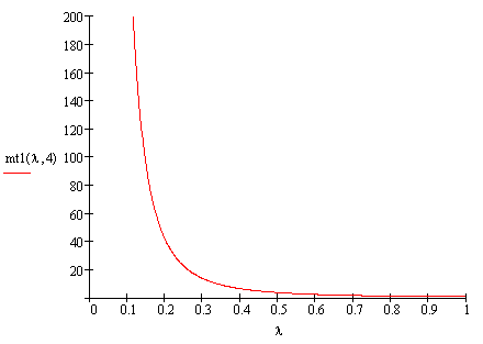 Ниже представлены графики зависимости Kг(), mt() и R() от интенсивности отказов (mtв от не зависит).