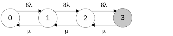 За состояния системы примем количество неисправных элементов системы, тогда граф состояний системы примет следующий вид: