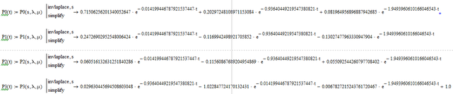 После применения обратного преобразования Лапласа и подстановки значений: =0.06 =1 можно получить выражения для P0(t), P1(t), P2(t) и P3(t)