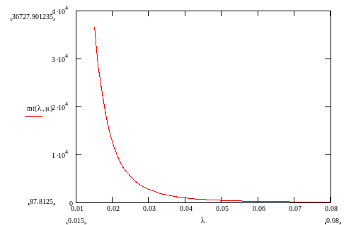Зависимость среднего времени восстановления системы от интенсивности восстановления:
