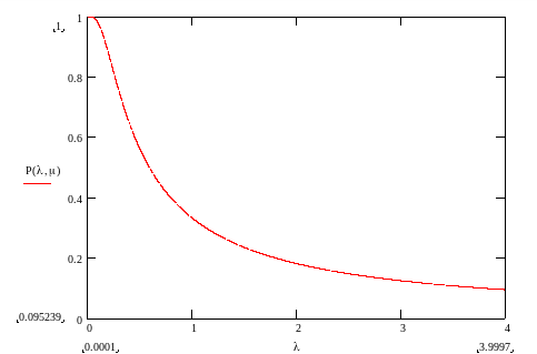 Зависимость вероятности успешного использования системы от интенсивности восстановления:
