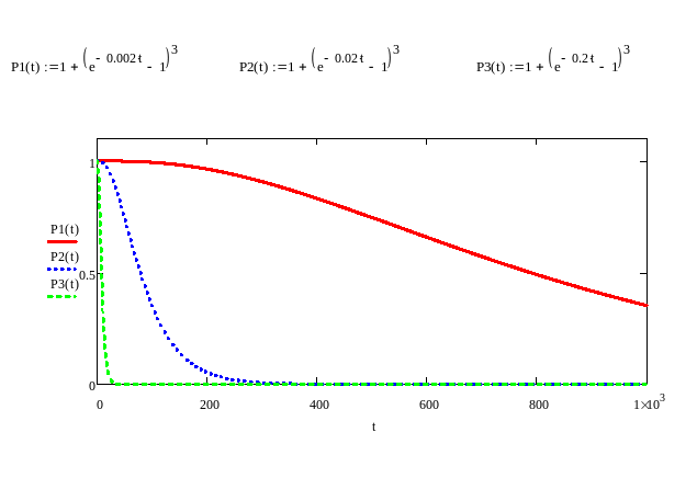 Зависимость вероятности безотказной работы системы от интенсивности отказов при заданном t: