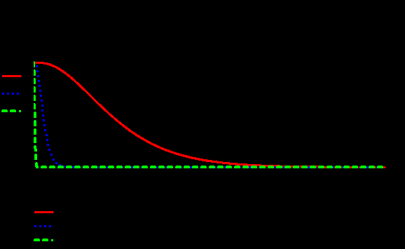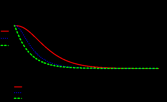 Зависимость вероятности безотказной работы системы от времени для разных значений интенсивности отказов: