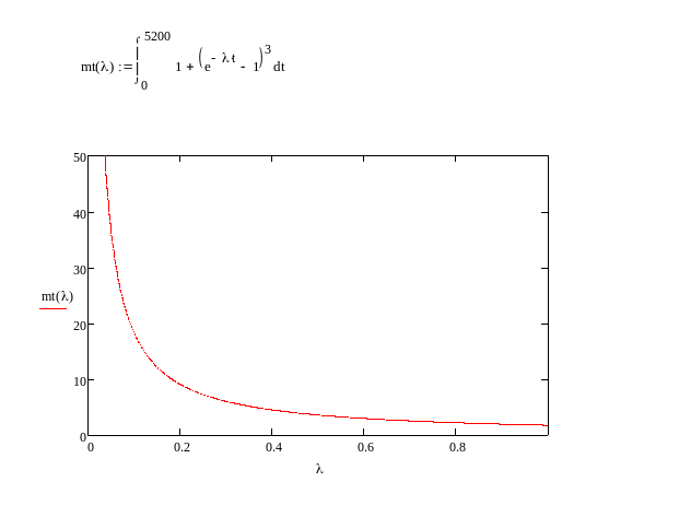 График зависимости среднего времени безотказной работы от интенсивности отказов: