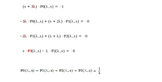Проведем для вышеприведенной системы уравнений в пакете Mathcad прямое преобразование Лапласа. В результате получим следующую систему: