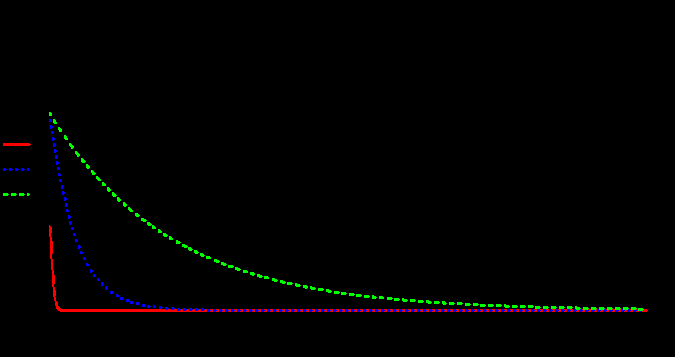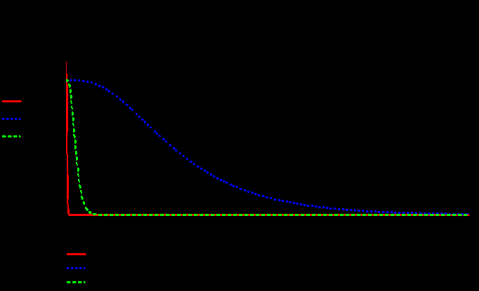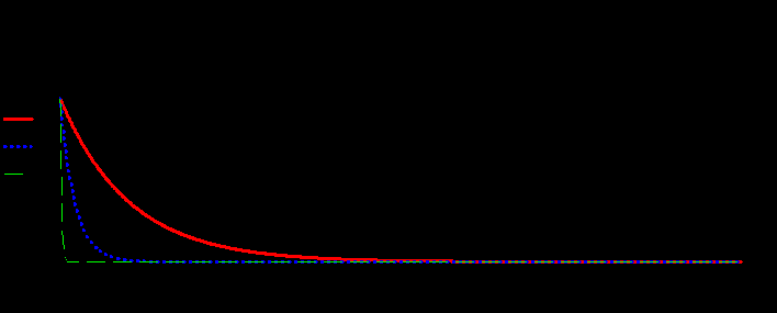 Зависимость вероятности безотказной работы системы от времени для разных значений интенсивности отказов: