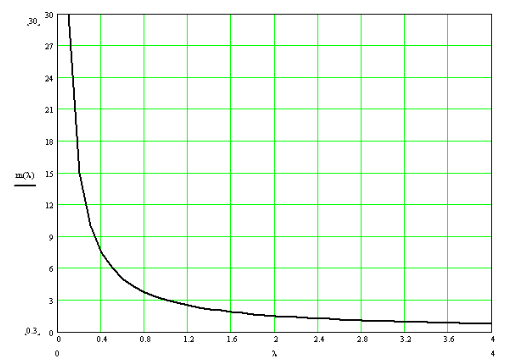 Зависимость среднего времени безотказной работы mt от интенсивности отказов элементов λ приведена на графике: