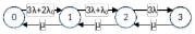 За состояния системы примем количество неисправных элементов системы, будем считать, что в системе одно восстанавливающее устройство, тогда граф состояний системы примет следующий вид