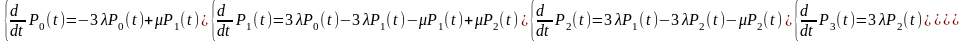 В начальный момент времени все элементы системы находятся в работоспособном состоянии: P0(0)=1, P1(0)=0, P2(0)=0, P3(0)=0.