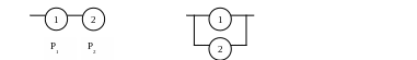 Если система состоит из элементов, выполняющих идентичные функции, то она параллельная. Она выходит из строя, когда выходит из строя последний элемент (один основной и все резервные).