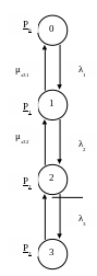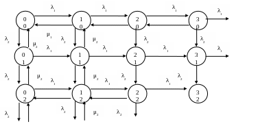0 = - P00*λ1 + P10*μ1 + P01*μ2 - P0*λ2