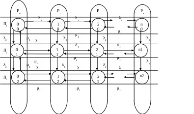 Pij – вероятность того, что в системе i заявок 1-ого типа независимо от того, сколько заявок 2-ого типа.