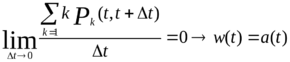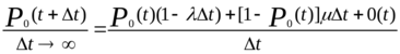 При допущении экспоненциальности законов распределения процесс изменения состояния объекта будет марковским с непрерывным временем и конечным множеством состояний. Определим вероятность того, что объект окажется работоспособным в момент времени (t;t+Δt). Обозначим нахождение объекта в работоспособном состоянии в момент времени t как P(t) (не путать с P(t) – вероятность безотказной работы на интервале