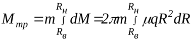 Момент трения муфты с кольцевыми накладками определяется интегралом [1]: