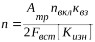 определить необходимое общее число фрикционных овальных вставок, используя формулу (32), и средний радиус трения муфты по работоспособности Rтр.К , используя формулу (33). При определении необходимого общего числа вставок по формуле (32) принять nвкл=nод.х , где nод.х – паспортное число одиночных ходов пресса в минуту (см. в табл. 2);