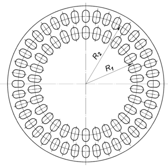 Число вставок в каждом ряду (n1,n2) должно быть примерно пропорционально среднему радиусу этого ряда (