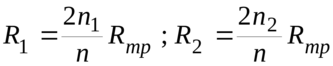 Округлив значения n1 и n2 до ближайших целых чисел с условием, что n1+n2=n можно уточнить значения радиусов R1 и R2: