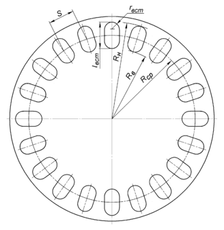 а окружности радиусом Rср с шагомДля овальных вставок S=(3…5) rвст. Если число рядов вставок обозначить как up (обычно не больше двух), то