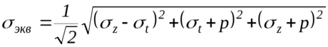 следует брать в диапазоне 1,5…2,5. Эквивалентное напряжение в галтели В может в 2…3 раза превышать эквивалентное напряжение на внутренней поверхности в зоне Ламе, определённое по формуле (40). Галтель В является наиболее нагруженной зоной цилиндра. Для снижения напряжений σz и σэкв галтель В выполняют с радиусом r д >1,5(r2–r1). Такая галтель увеличивает толщину стенки цилиндра около днища и значительно снижает растягивающие напряжения σz и σt в опасной зоне.