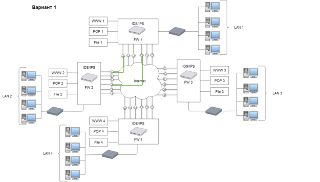 Одна из территорий выбирается в качестве «центральной»., на ней разместится единый для всех территорий ЦОД. При выборе территории для ЦОДа следует принимать во внимание трафик, возникающий между остальными территориями и ЦОДом.