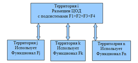 В едином ЦОДе размещаются все 4 подсистемы, размещавшиеся ранее по отдельности на 4-х территориях. На остальных трех территориях ИТ-инфраструктура значительно упростится (не будет DMZ, а также серверов приложений и серверов БД). Из общей инфраструктуры на удаленных территориях сохранятся только файрволлы, локальные сети и АРМы пользователей – пользователи не переезжают вслед за «их» подсистемами, остаются на своей территории и используют функционал своих подсистем).