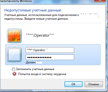 В поле пароля ввести выданный Вам администратором пароль. В поле «Запомнить учетные данные» галочку НЕ СТАВИТЬ !!!