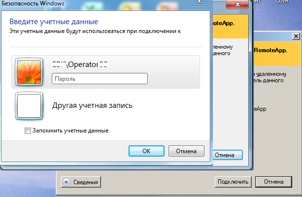 В нем нажать кнопку «Другая учетная запись», если Ваша учетная запись (идентификатор) отлична от высвеченной (в данном примере это Operator09).