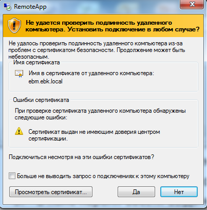 Двойным щелчком левой кнопки мыши по ярлыку Organization_ХХХ.rdp запустить программу доступа.