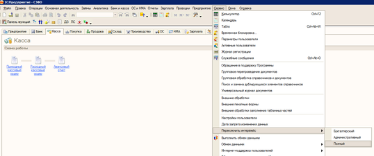Затем откроется окно с интерфейсом 1С:Предприятие 8.2.