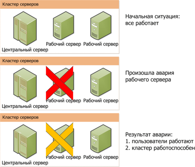 Отказоустойчивый кластер обеспечивает бесперебойную работу пользователей в следующих случаях: