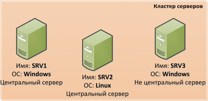 При рассмотрении примеров требований назначений функциональности будет использоваться следующий кластер серверов: