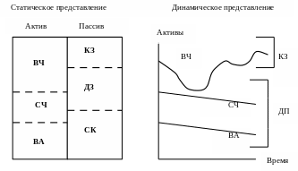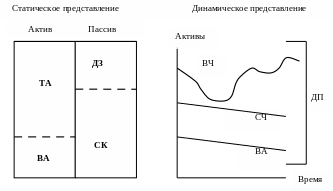 где ОК – чистый оборотный капитал (ОК = ТА ─ КЗ); ДП – долгосрочные пассивы (ДП = СК + ДЗ); ВА – внеоборотные активы; ТА – текущие активы (ТА = СЧ + ВЧ); КЗ – краткосрочная задолженность; СК – собственный капитал; ДЗ – долгосрочный заемный капитал; СЧ – системная часть текущих активов; ВЧ – варьирующая часть текущих активов.