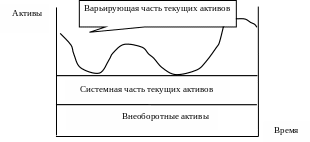 Категория переменного оборотного капитала (варьирующей части текущих активов) отражает дополнительные текущие активы, необходимые в пиковые периоды или в качестве страхового запаса (рис. 1).