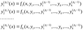 Основные понятия. Связь с дифференциальными уравнениями n-го порядка. Ecли система k дифференциальных уравнений, связывающая независимую переменную х и k функций у1(x), ..., yk(х), разрешена относительно старших производных этих функций, то есть имеет вид