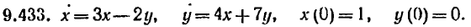Домашнее задание. Решить следующие системы линейных дифференциальных уравнений с постоянными коэффициентами. Там, где даны начальные условия, кроме общего решения, найти соответствующее частное решение: