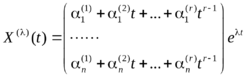в) λ − корень кратности r ≥2. Соответствующее этому корню решение системы (1) ищется в виде вектора