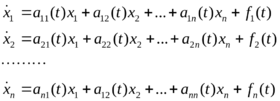 где по крайней мере одна из функций fk(t) не равна тождественно нулю. В матричной форме система (5) имеет вид